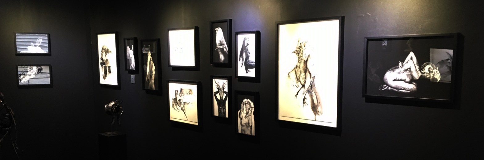 « Autour du bestiaire » à la galerie Catherine Mainguy, sont réunis pour une exposition commune, trois artistes, Éric Lacombe, Laurent Martinez et Catherine Mainguy dans un univers intimiste. Ils nous invitent à observer leurs chimères, animaux totems et imaginaires, aux caractéristiques mi-animales mi-humaines qui ne sont pas sans faire échos à notre propre situation, à notre part bestiale, notre âme[1].