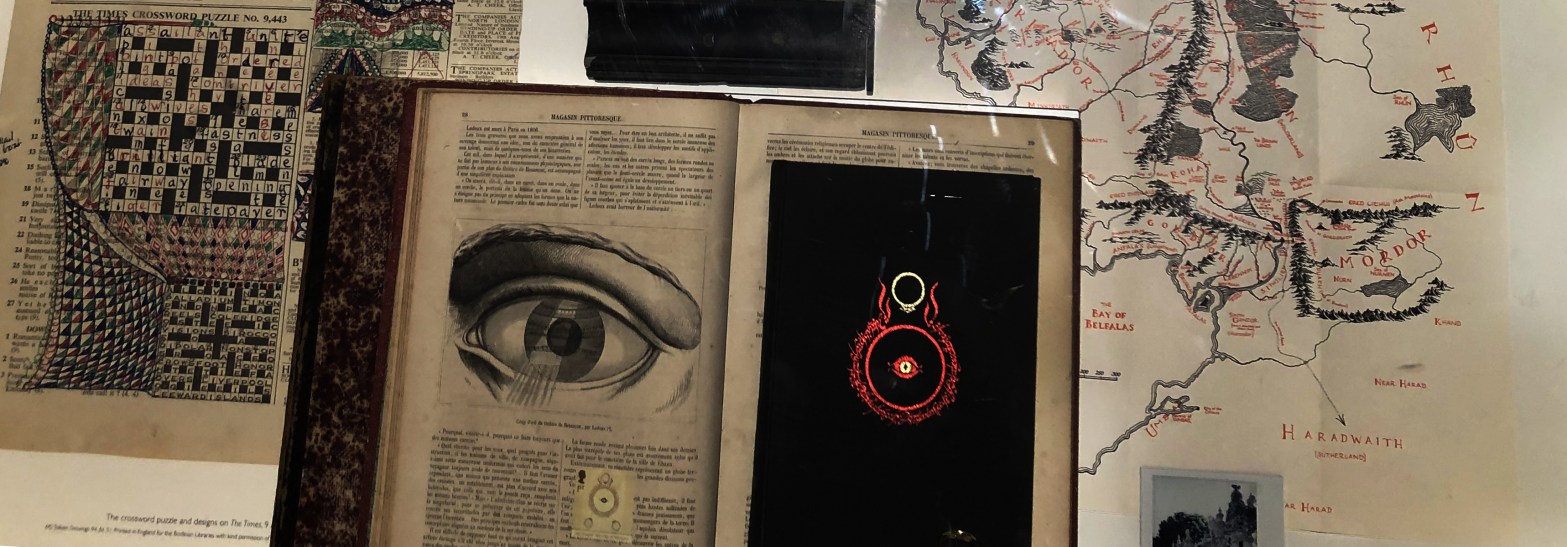 Le Palais idéal propose alors de faire le lien avec l’œuvre de J.R.R.Tolkien à travers l’univers graphique, un gout prononcé pour la nature, la marche, deux hommes qui nous font voyager alors qu’eux-mêmes n’ont souvent traversé que leur contrée. Tolkien n’a alors jamais vu le Palais idéal, cette filiation est donc imaginée, mais fonctionne grâce aux inspirations similaires et ce gout pour le rêve et les mondes oniriques. Car l’architecture du Facteur cheval, c’est un langage, un langage naïf certes, mais vrai. En témoignent les nombreux textes gravés au cœur du palais.